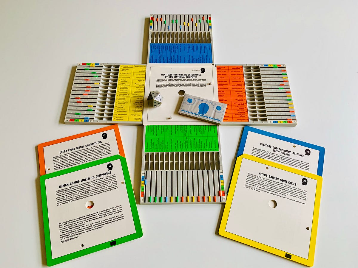I put this positioning to renowned forecaster Paul Saffo, formerly of Institute for the Future, and now a professor at Stanford. Saffo has also collected copies of Future over the years, and has stayed in touch with Gordon as well, sometimes discussing the game. “The interesting thing about games like this is the number of people who actually played it was probably very small,” Saffo told me. “But the very fact that the game existed — that people considered the possibility of playing a game [about forecasts] was in many, many ways much more important than whether people actually play the game itself.”