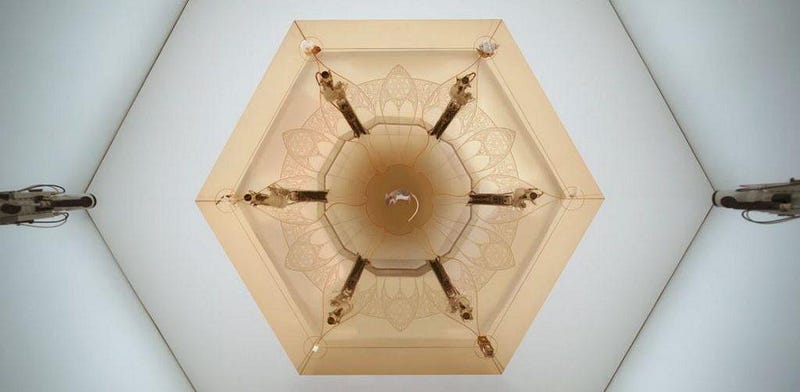 The Devs facility itself is isolation-within-isolation. A kind of chapel in the woods, if a chapel had “A lead faraday shield, a thirteen-yard thick concrete shell, then a gold mesh…then an eight-yard vacuum seal, totally unbroken,” this world-within-a-world houses Devs, the unit. The structure, one eagle-eyed Redditor recently noted, bears a striking similarity to the tabernacle built by the Israelites at God’s instruction, to house the Ark of the Covenant.