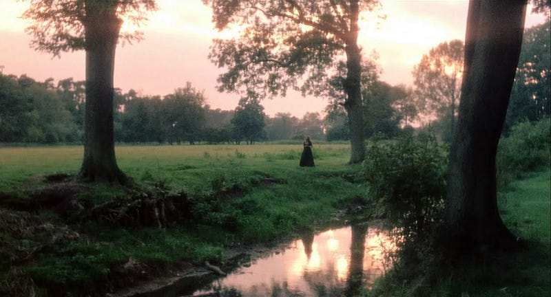 Cinematically, this bucolic mise en scène transports us directly to a natural isolation, which is a perfect trope of the genre: the woods, the trees, the water, the path, the quiet, the reverential movement of people. As the second element in the chain, we see this use of remoteness in the classics of folk horror forty years prior, and it’s echoed here. As an audience, we’re immediately introduced to a principal character of the construct — nature, as both haven and hero.